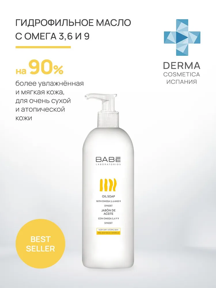 Очищающее масло BABE Laboratorios для сухой, чувствительной и атопичной кожи (без воды) с Омега 3,6 и 9, 500 мл
