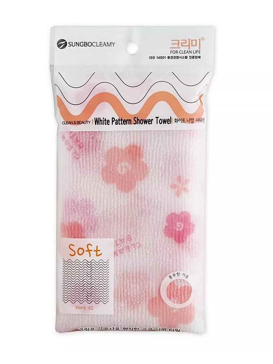 Sungbo Cleamy Мочалка для тела с объёмным жаккардовым плетением, Jacquard Shower Towel средней жёсткости, размер 23 см х 95 см