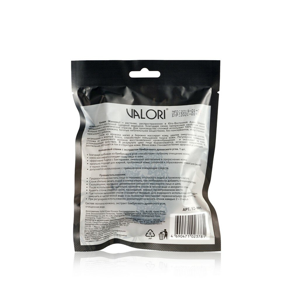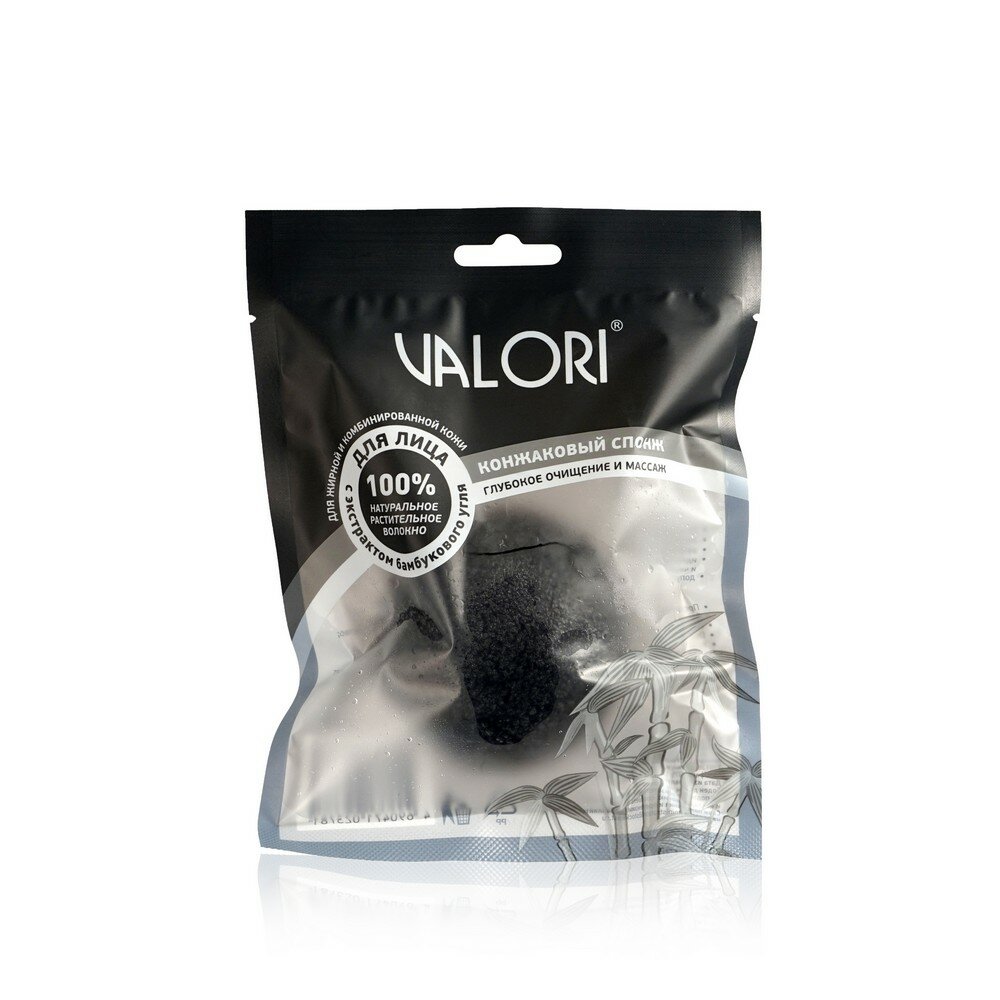 Купить Конжаковый спонж Valori для лица " с экстрактом бамбукового угля " для жирной и комбинированной кожи