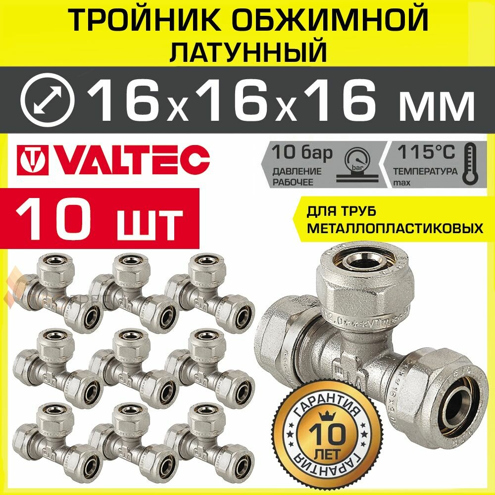 Тройник 16x16x16 обжим (цанговый), VALTEC, VTm.331.N.161616