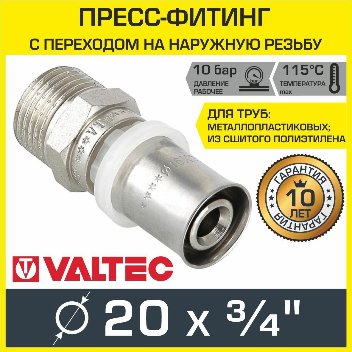 Соединитель пресс с переходом на нар. р. 20х3/4" | код. VTm.201.N.002005 | VALTEC ( 1шт. )