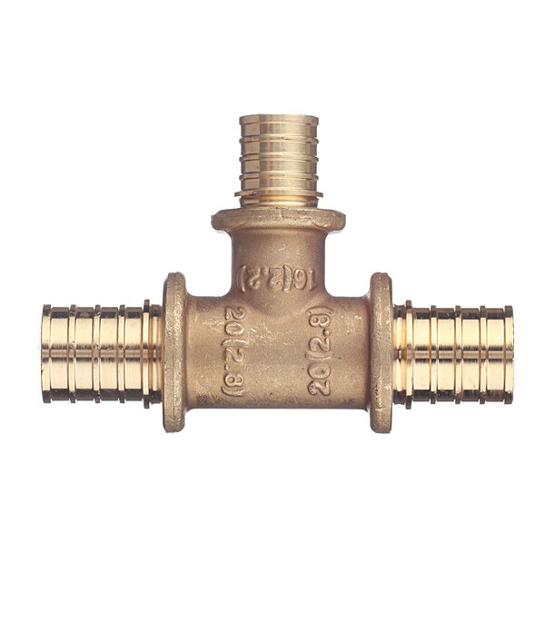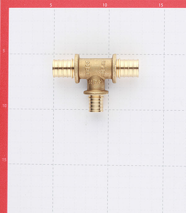 Тройник переходной 20x16x20 для труб из сшитого полиэтилена аксиальный ФУМ лента