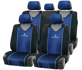 Чехлы на сиденья универсальные "маечка" "CARBON" (чёрно/синий) (к-т 9 пр)