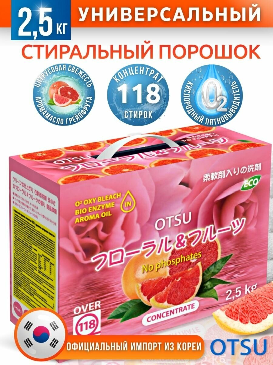 Стиральный порошок Otsu, без фосфатов, с ароматом сочных цитрусовых и цветов, 2,5 кг