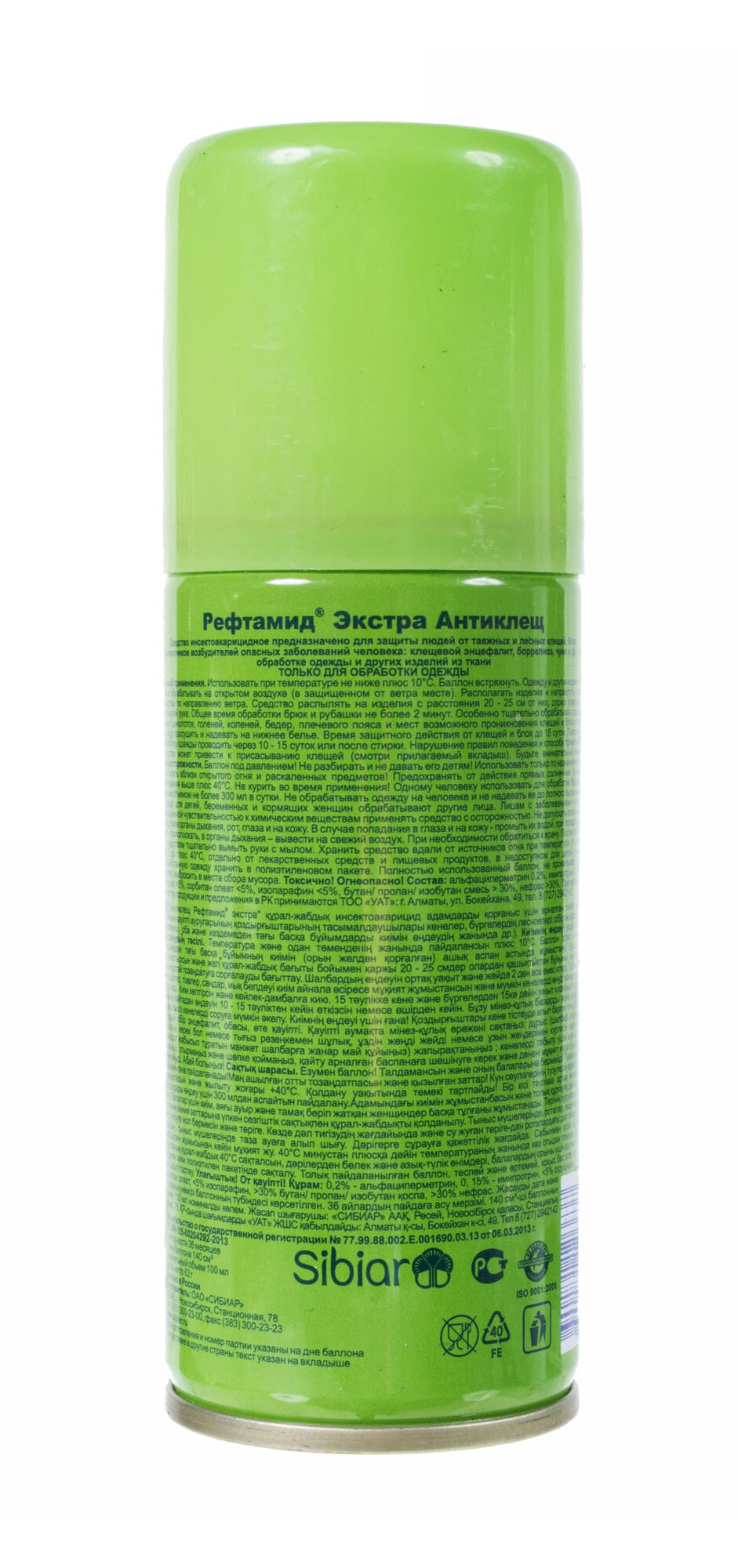 Аэрозоль Рефтамид Антиклещ Экстра, 150 г, 145 мл, черный/зеленый