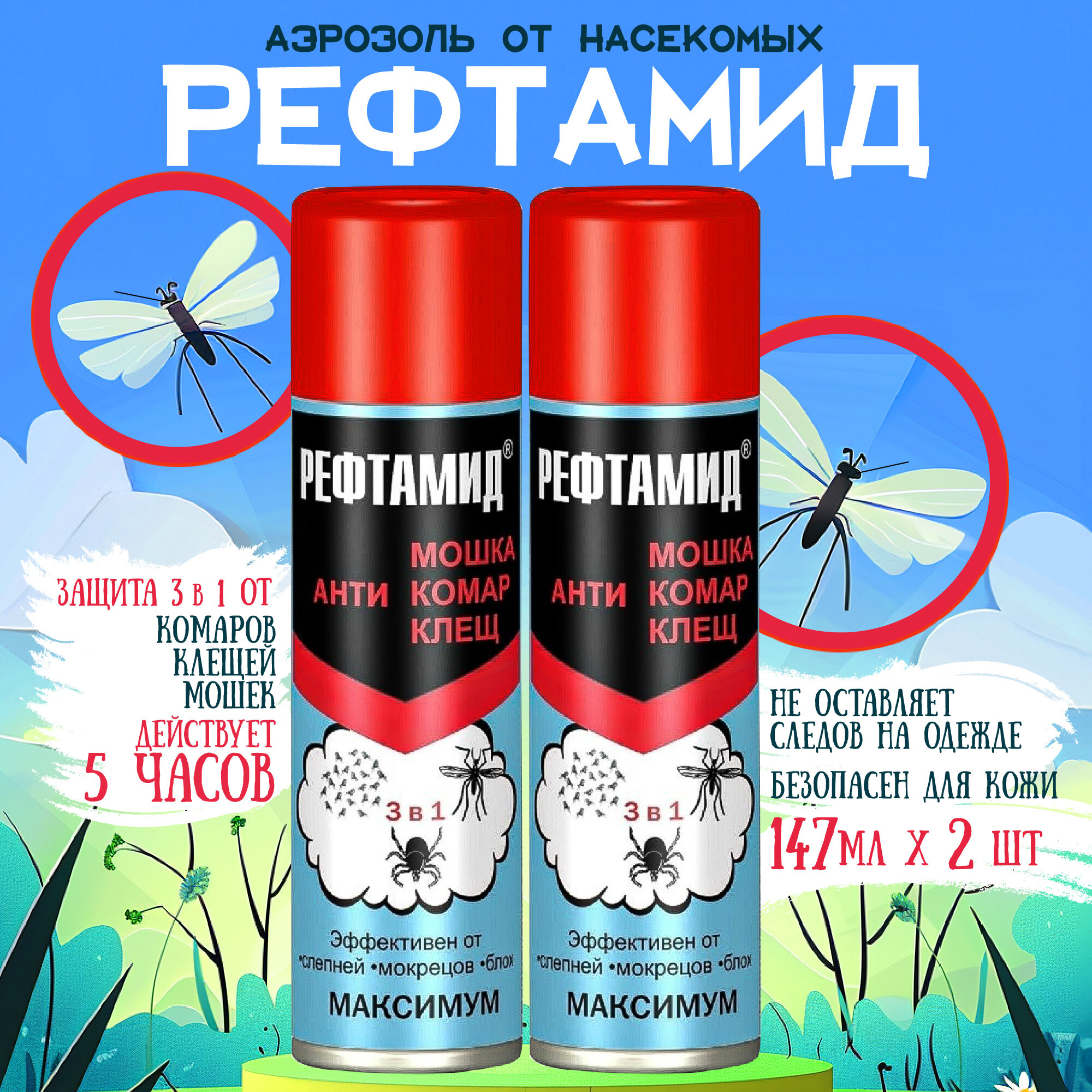 Средство от комаров, клещей, мошки. Рефтамид Максимум 147мл. 2 штуки