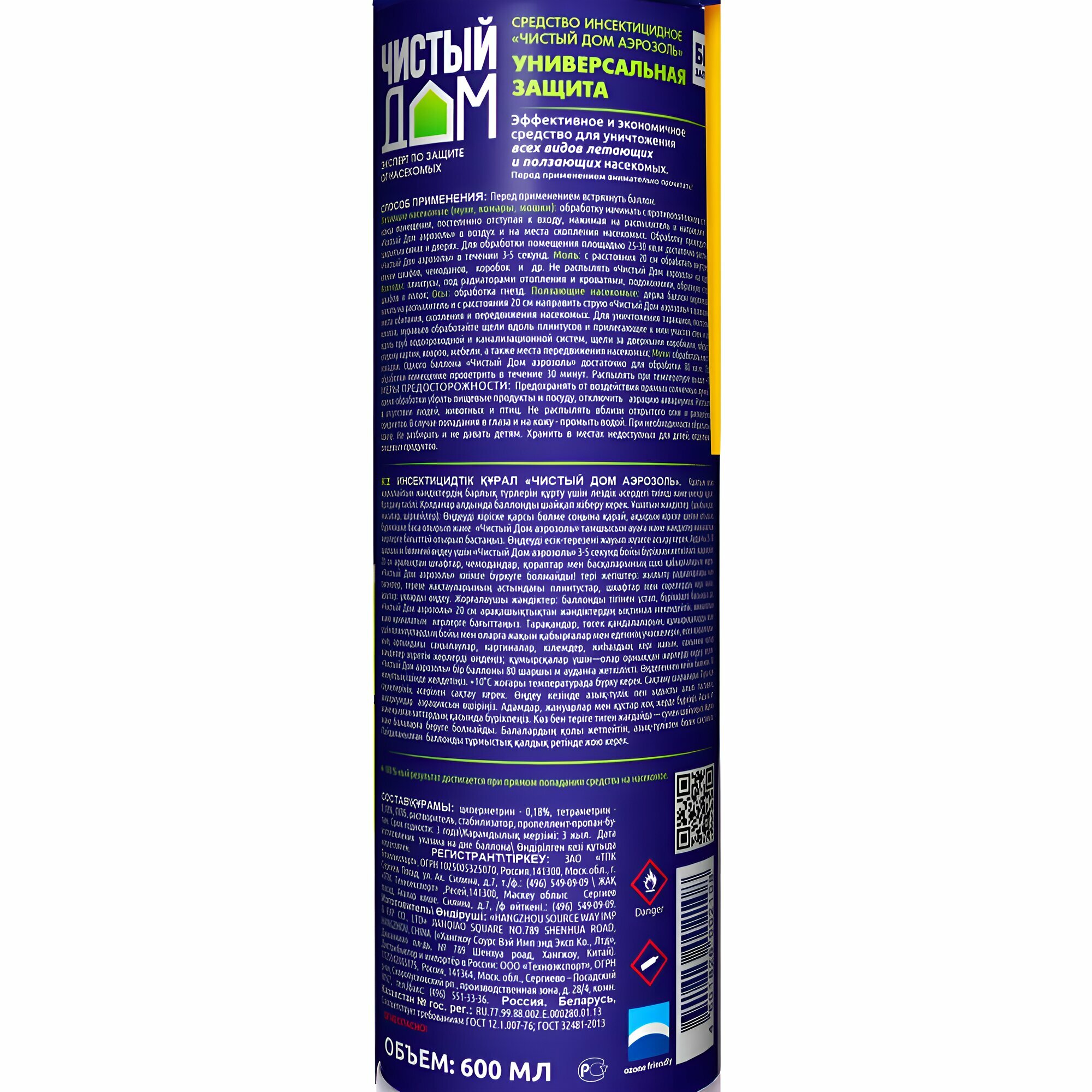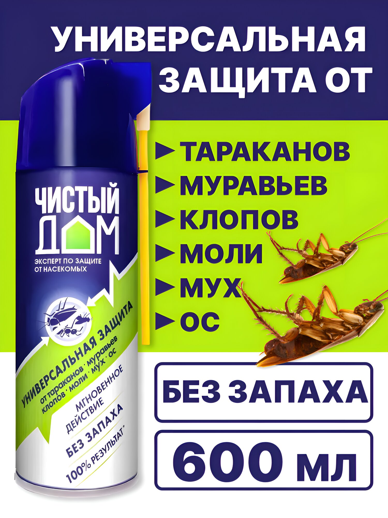 Чистый дом, универсальный аэрозоль от клопов, тараканов, блох, муравьев, мух, ос 600 мл