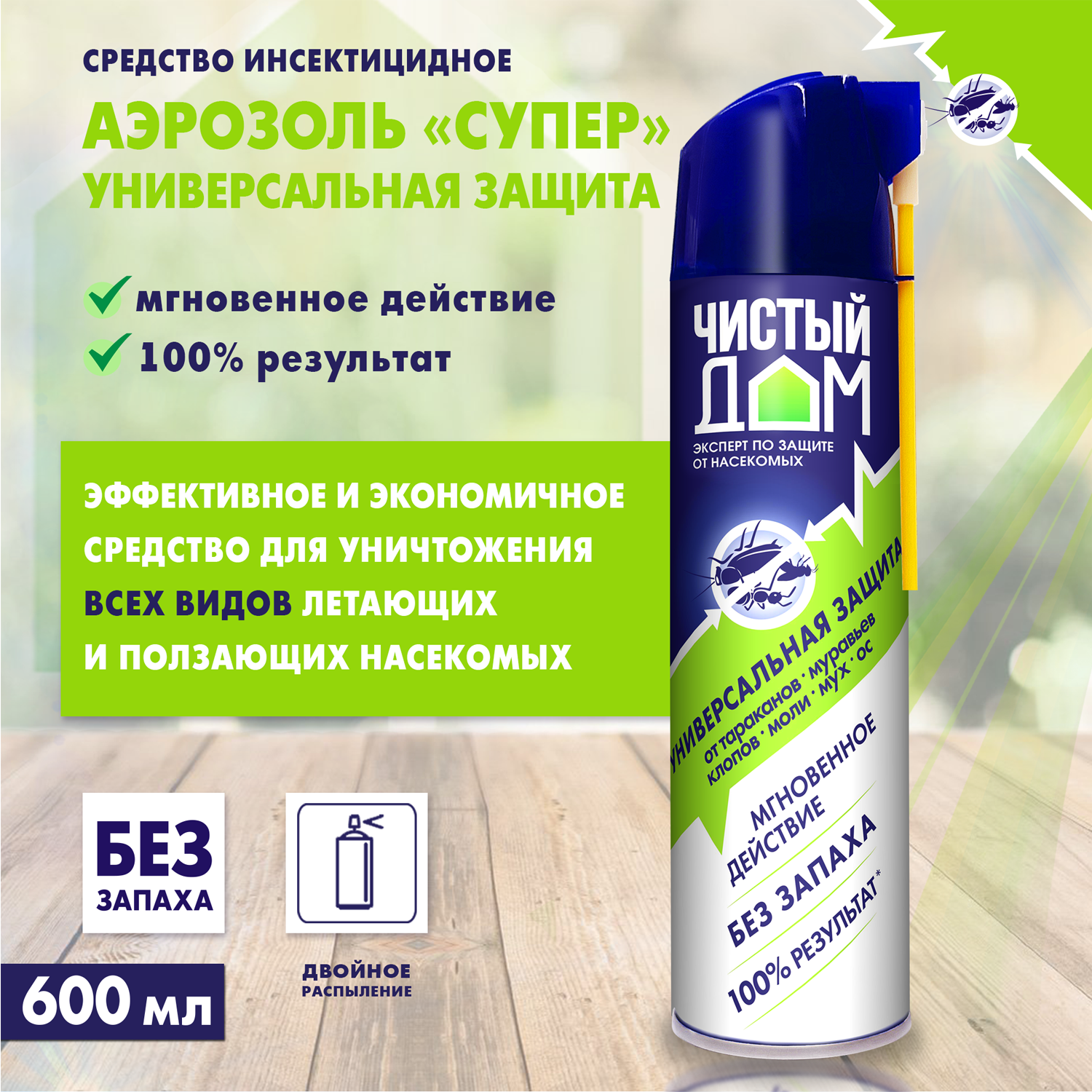Аэрозоль от насекомых супер универсальный "Чистый Дом" (двойное распыление), 600 мл