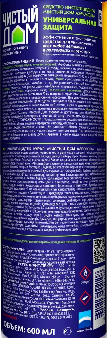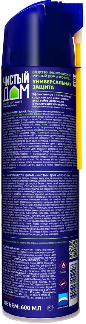Чистый дом, универсальный аэрозоль от клопов, тараканов, блох, муравьев, мух, ос 600 мл