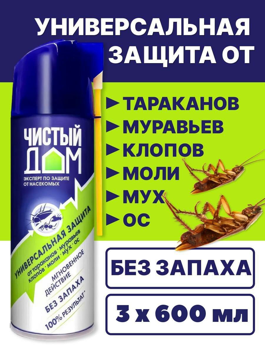 Чистый дом, универсальный аэрозоль от клопов, тараканов, блох, муравьев, мух, ос 600 мл