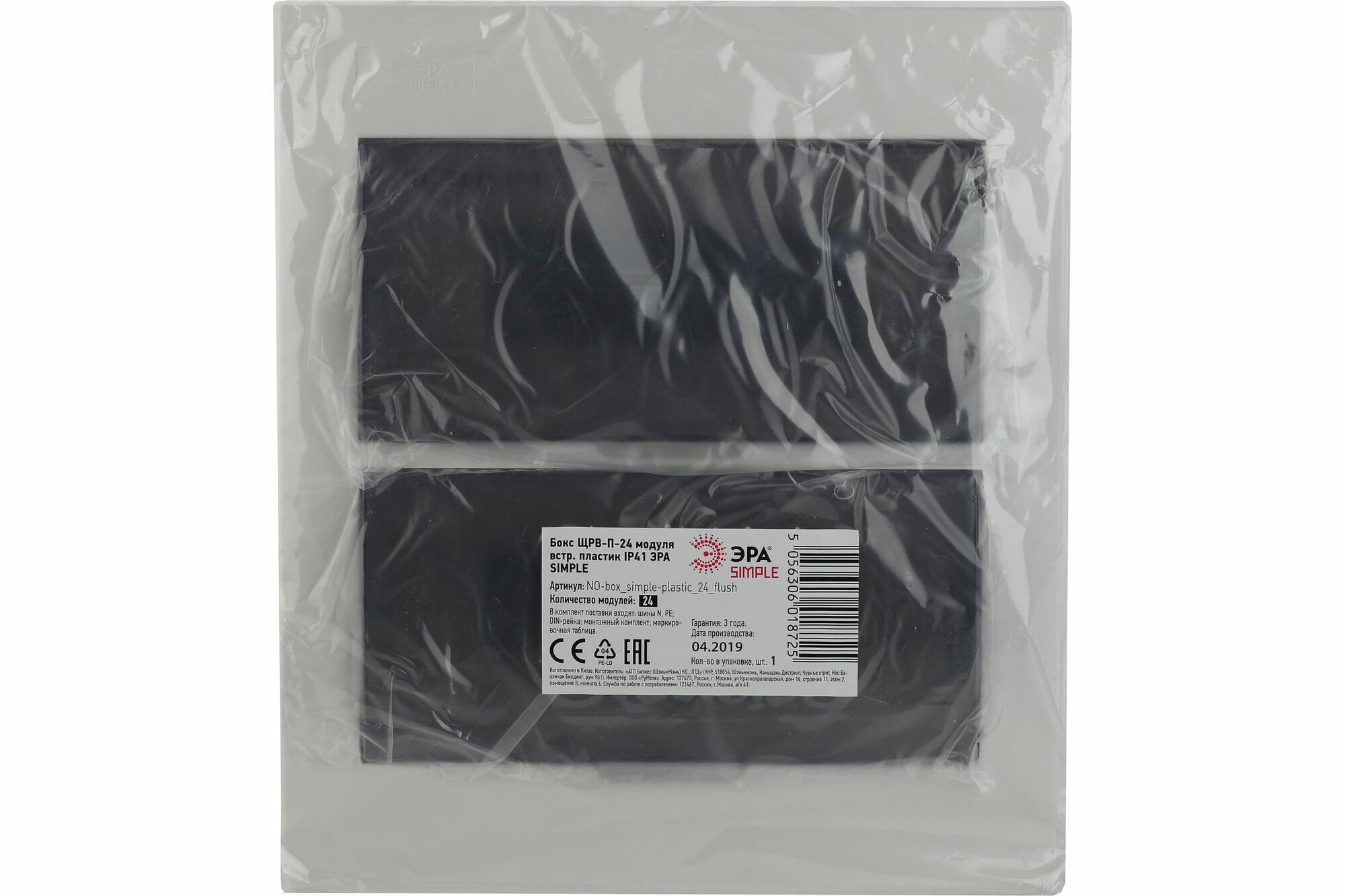 ЭРА SIMPLE бокс (корпус) пластик ЩРВ-П-24 встраиваемый с дымчатой дверцей IP41 8725