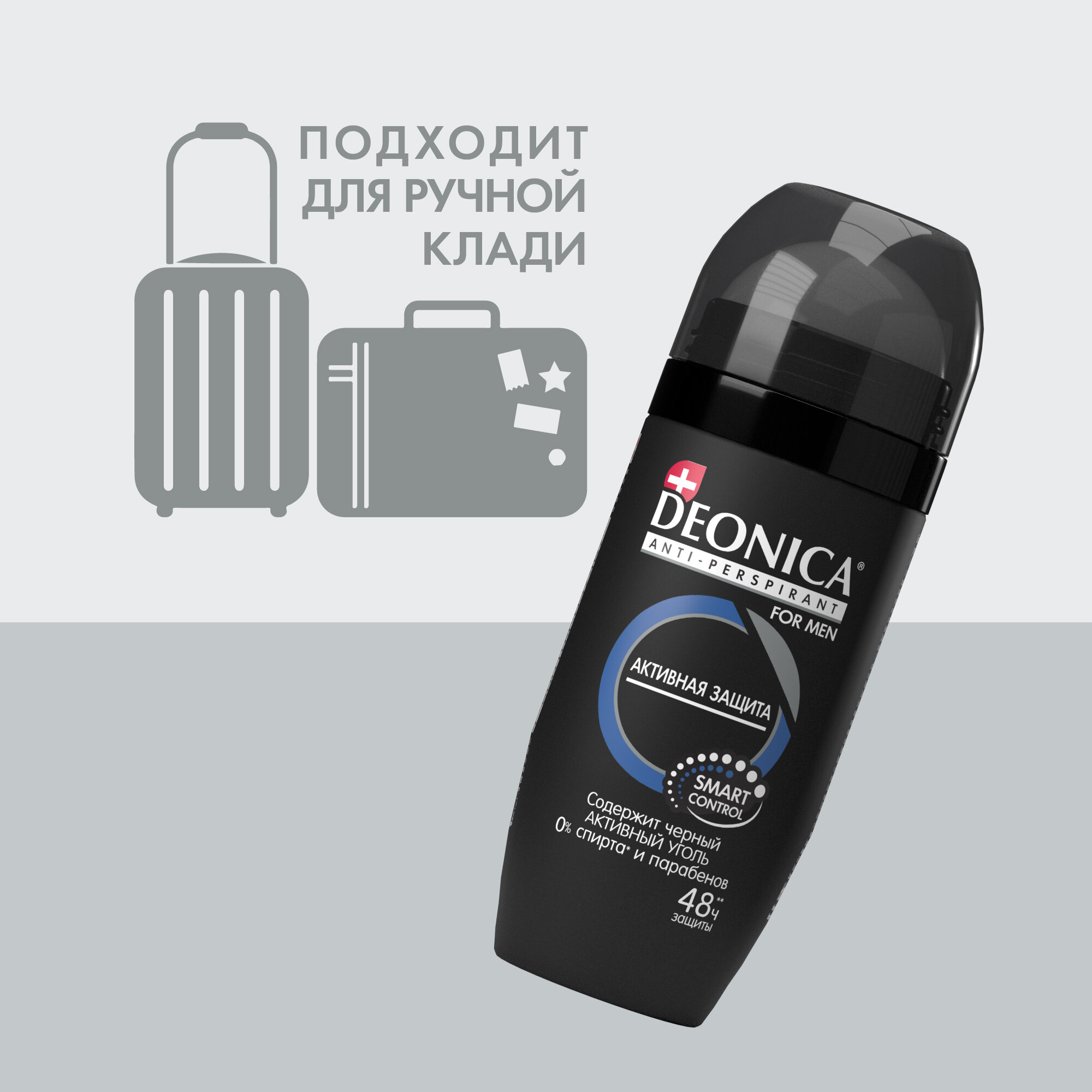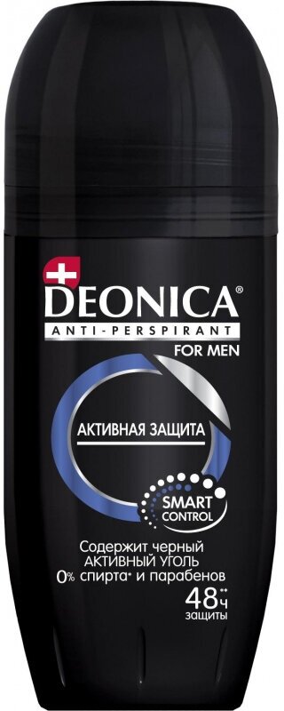 Дезодорант мужской антиперспирант Deonica For Men "Активная защита". Ролик, 50 мл. Содержит активный уголь, нейтрализующий бактерии. Не оставляет следов на одежде