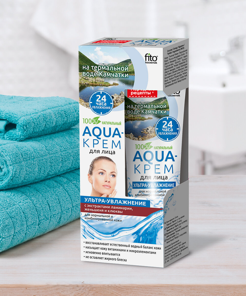 Крем для лица Fito косметик Aqua-крем для лица на термальной воде камчатки с экстрактом ламинарии, женьшеня и экстрактом клюквы «Ультра- увлажнение»
