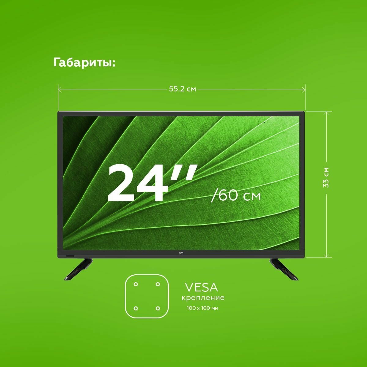Телевизор BQ 2402B, 24", 1366x768, DVB-T2/S/S2/С, HDMI, USB, черный