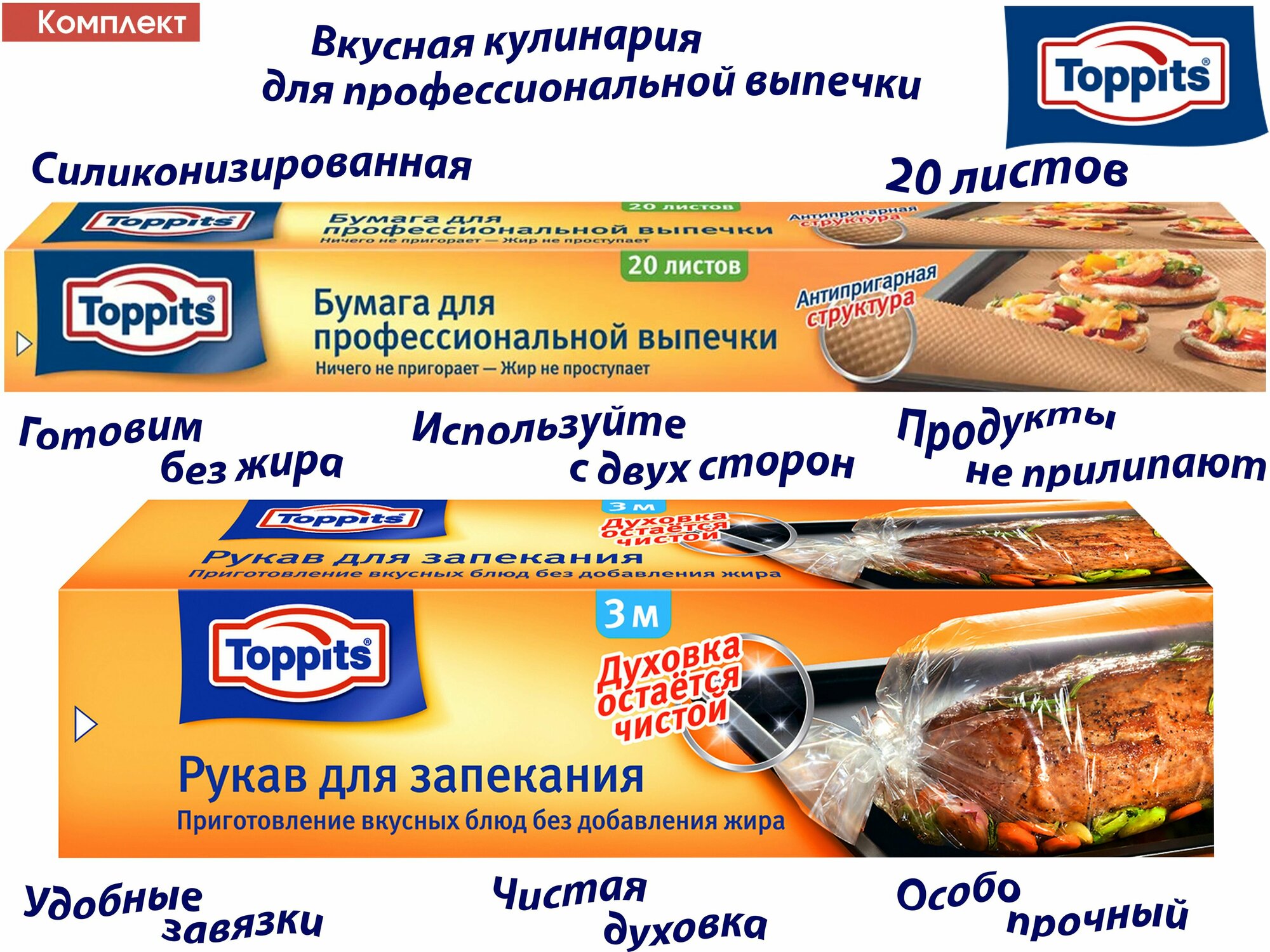 Ниже Вы можете прочитать отзывы на Комплект: TOPPITS Бумага д/профессиональной выпечки, 20шт. и Рукав для запекания 3м х 31см, ознакомится с подробными характеристиками, посмотреть интересные обзоры и фотографии на Комплект: TOPPITS Бумага д/профессиональной выпечки, 20шт. и Рукав для запекания 3м х 31см.