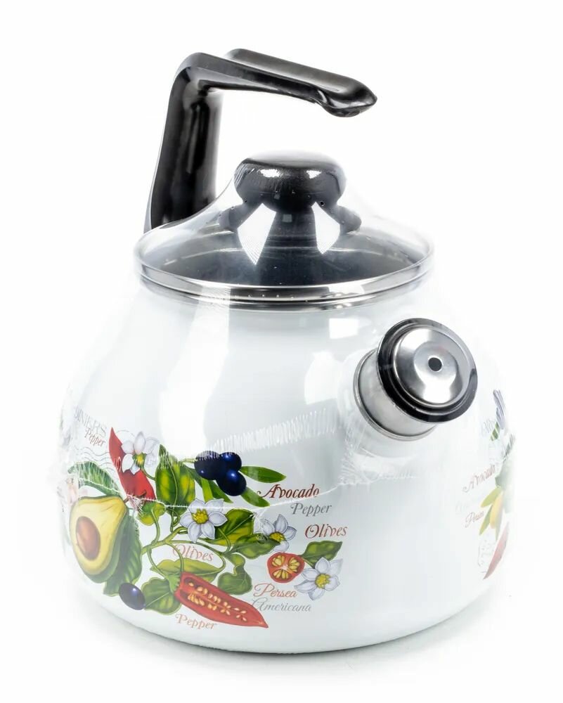 Чайник эмалированный со свистком СтальЭмаль Вкусный компот, 3 л