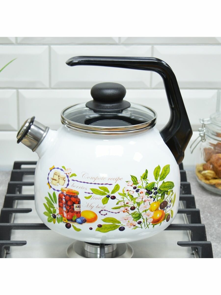 Чайник эмалированный со свистком СтальЭмаль Вкусный компот, 3 л