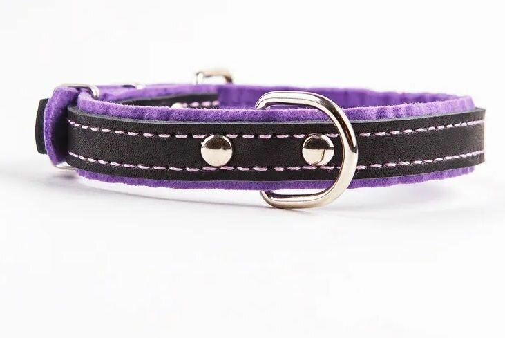 Ошейник Аркон кожаный с подкладом "Фетр", 1,6 см, ОШ 20-28 см, чёрный/фиолетовый