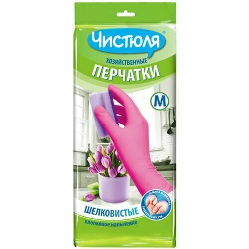 Чистюля перчатки хозяйственные M(8) из латекса с хлопковым напылением