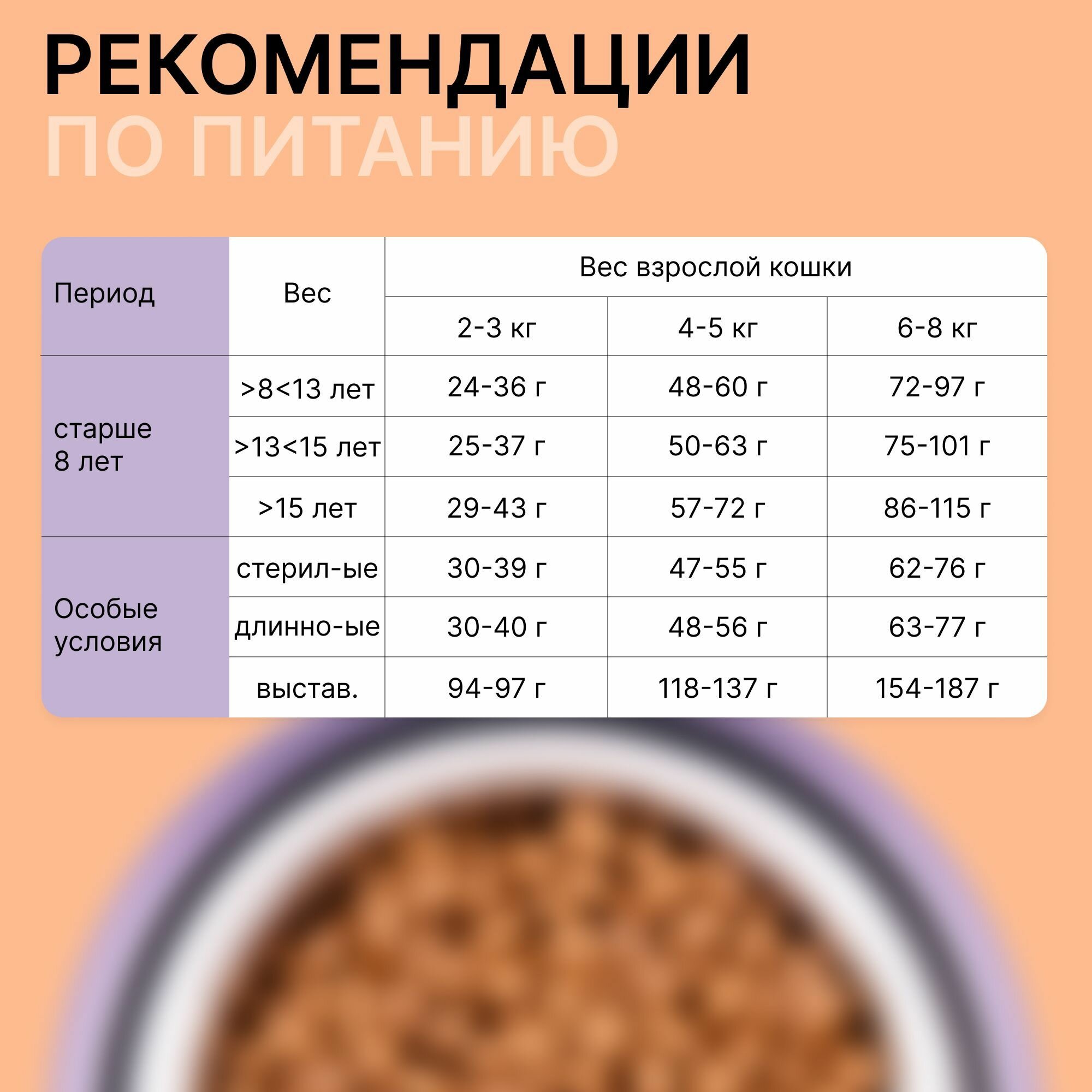 | Возраст животного | взрослые (1-6 лет) |