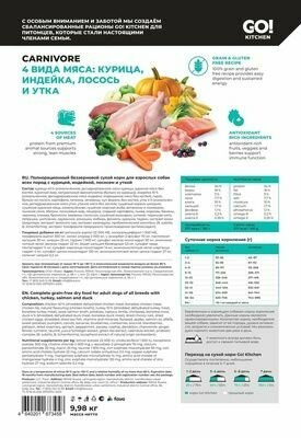 Купить GOKITCHEN Беззерновой для Взрослых Собак всех пород 4 вида мяса: Индейка Курица Лосось Утка (GO! CARNIVORE GF Chicken,Turkey + Duck Adult Recipe DF) 3416 5,440 кг 34839 (1 шт)