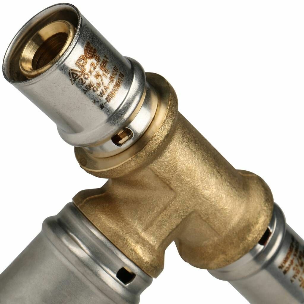 Тройник переходной 20х16х20 для металлопластиковых труб прессовой ФУМ лента 10м