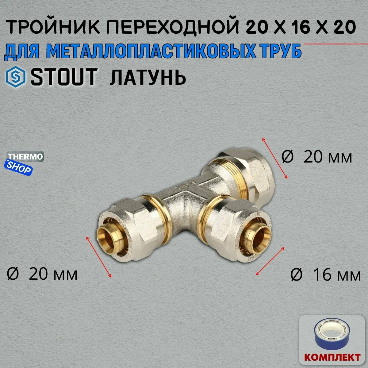 Купить Тройник переходной 20х16х20 STOUT для металлопластиковых труб