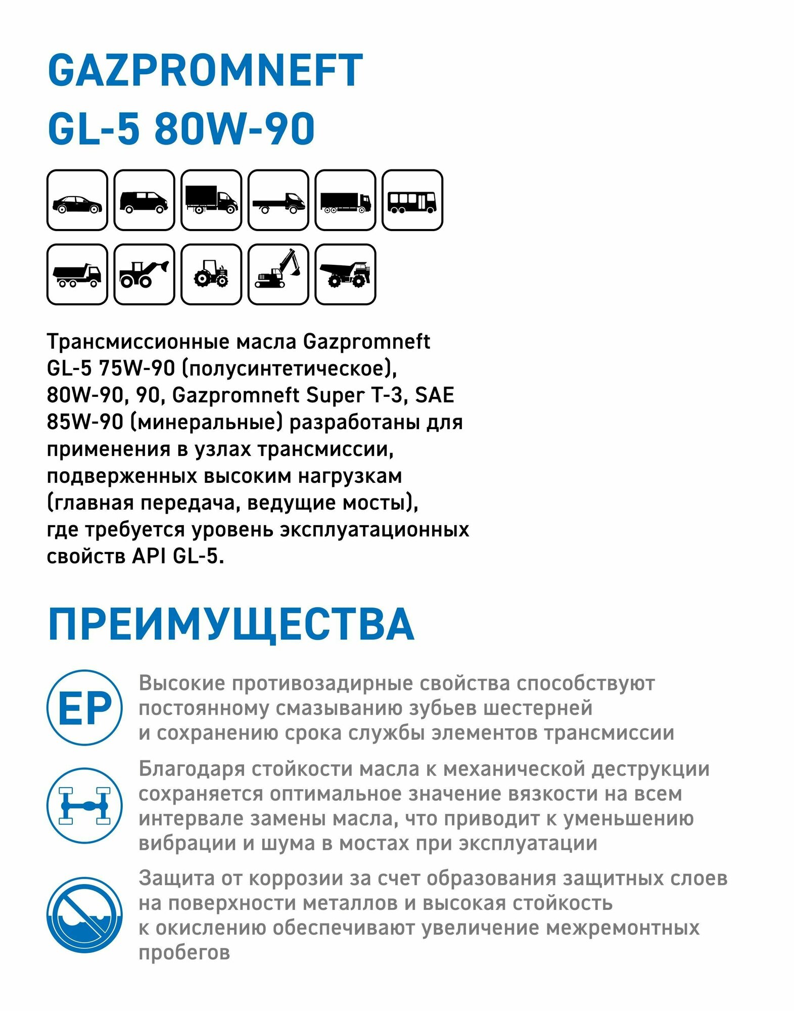 Масло Gazpromneft 80w90 Gl-5 4л Транс Gazpromneft арт. 2389901362