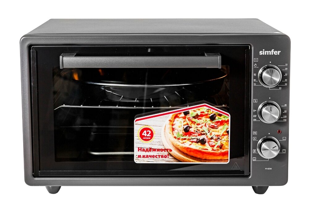 Мини-печь Simfer / 5 режимов работы / конвекция / 42 литра / 2 противня + хромированная решетка / утапливаемые переключатели / подсветка / эмалированная внутренняя поверхность / 5 лет гарантии / черный интересное: