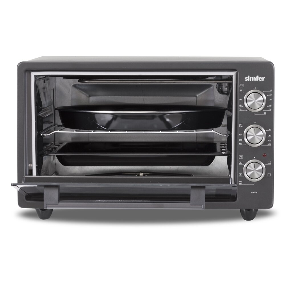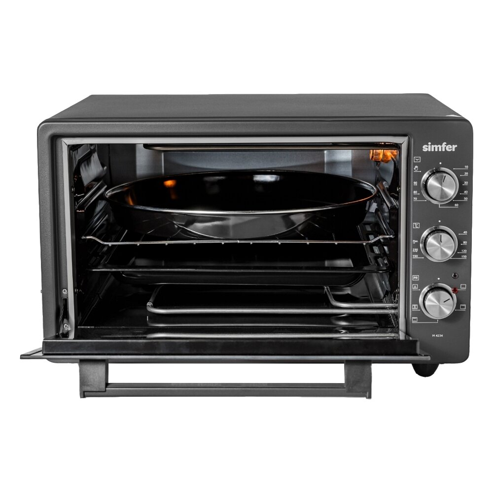 Купить Мини-печь Simfer / 5 режимов работы / конвекция / 42 литра / 2 противня + хромированная решетка / утапливаемые переключатели / подсветка / эмалированная внутренняя поверхность / 5 лет гарантии / черный