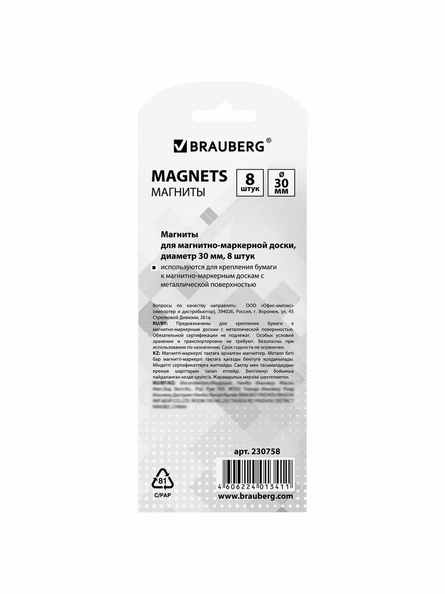 Магниты, 30 мм, 8 шт. BRAUBERG 230758