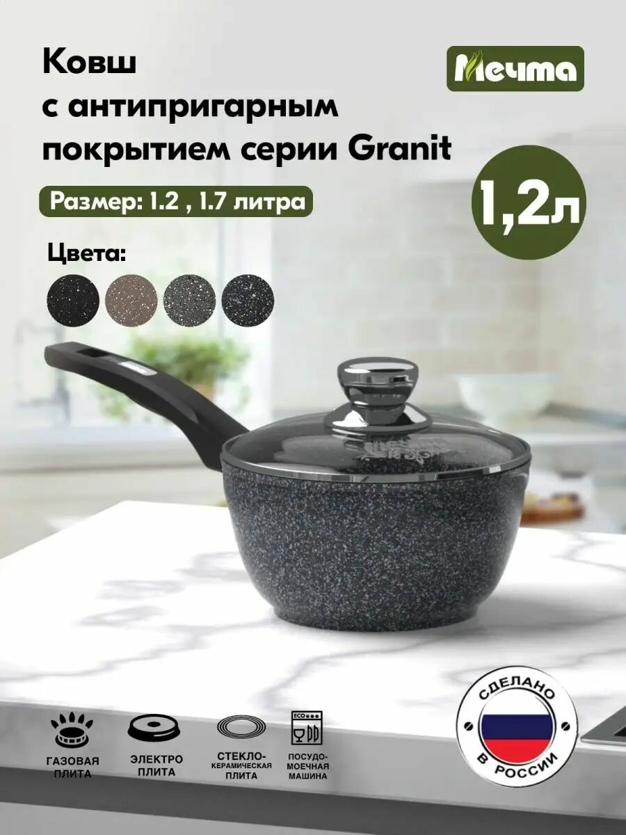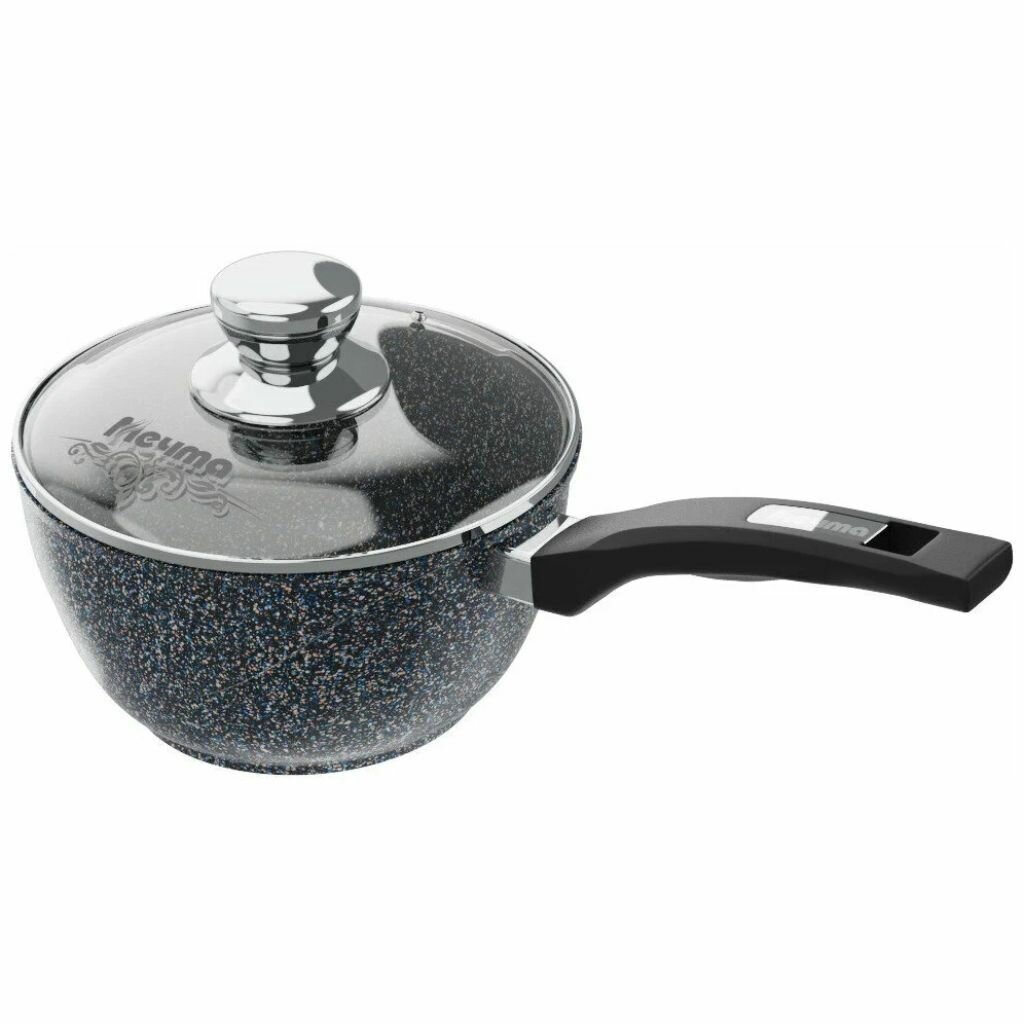 Ковш Мечта 1.2 л Гранит с антипригарным покрытием с несъемной ручкой и крышкой, НЕ индукционная