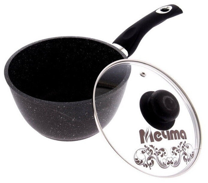 Ковш Мечта 1.7 л Гранит с антипригарным покрытием с несъемной ручкой и крышкой, НЕ индукционная