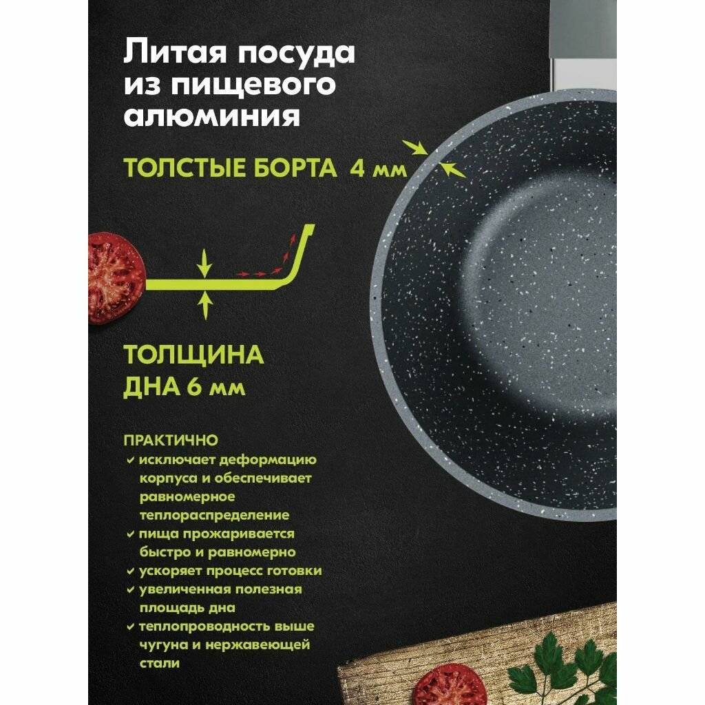 Ковш "Мечта" 1.7л Гранит с антипригарным покрытием с несъемной ручкой и крышкой, можно мыть в посудомоечной машине