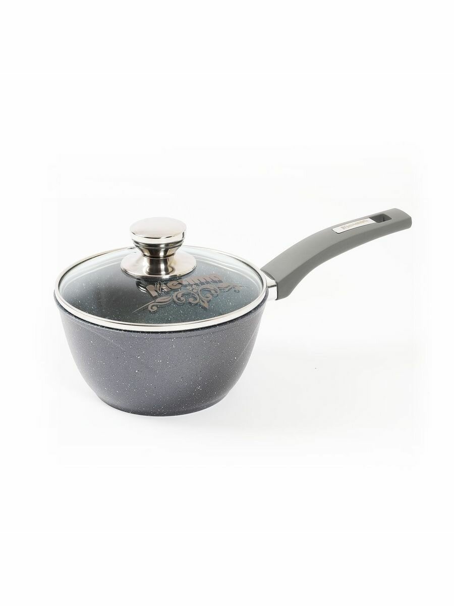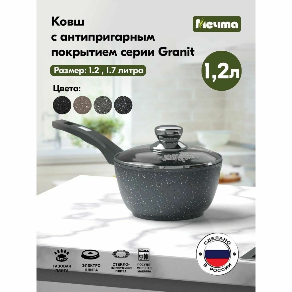 Ковш Мечта 1.2 л Гранит с антипригарным покрытием с несъемной ручкой и крышкой, НЕ индукционная