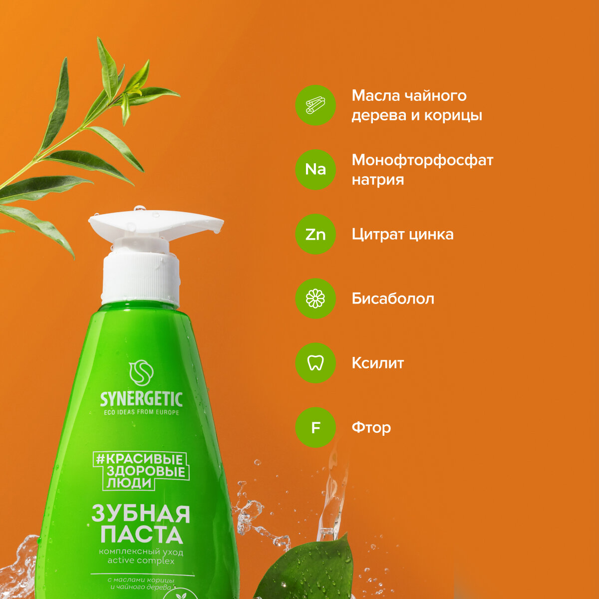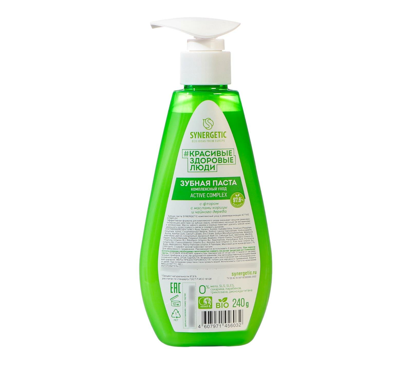Купить Зубная паста SYNERGETIC комплексный уход и реминерализация ACTIVE COMPLEX, 240 г