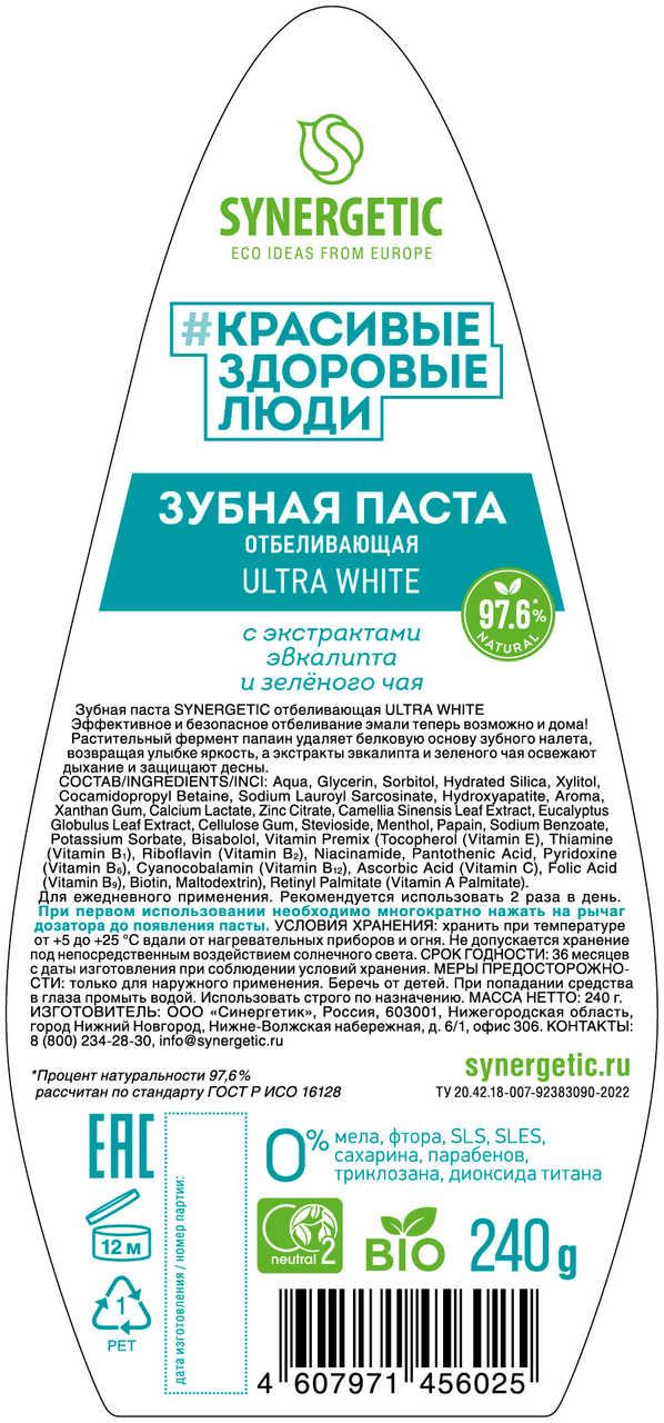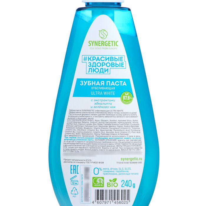 Зубная паста SYNERGETIC отбеливающая ULTRA WHITE, 240 г