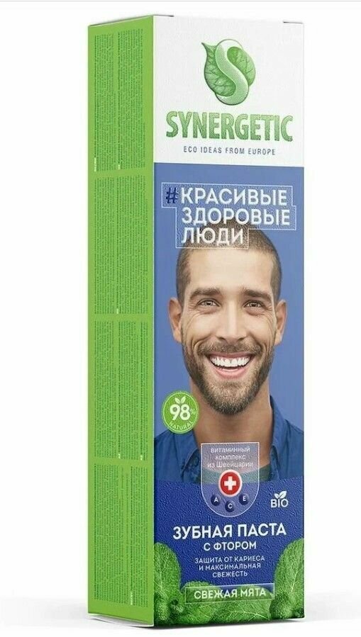 Купить Synergetic Паста зубная "Свежая мята", защита от кариеса и максимальная свежесть, 100 грамм