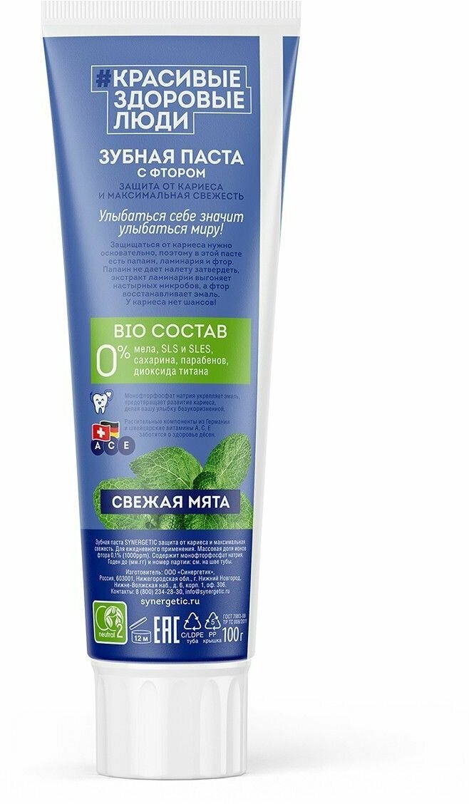 Synergetic Паста зубная "Свежая мята", защита от кариеса и максимальная свежесть, 100 грамм