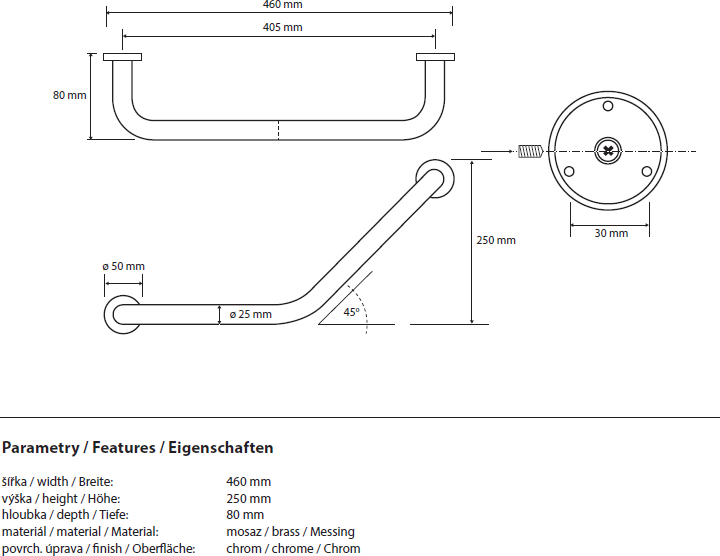 Поручень Bemeta Omega изогнутый 460 мм хром (102307022)