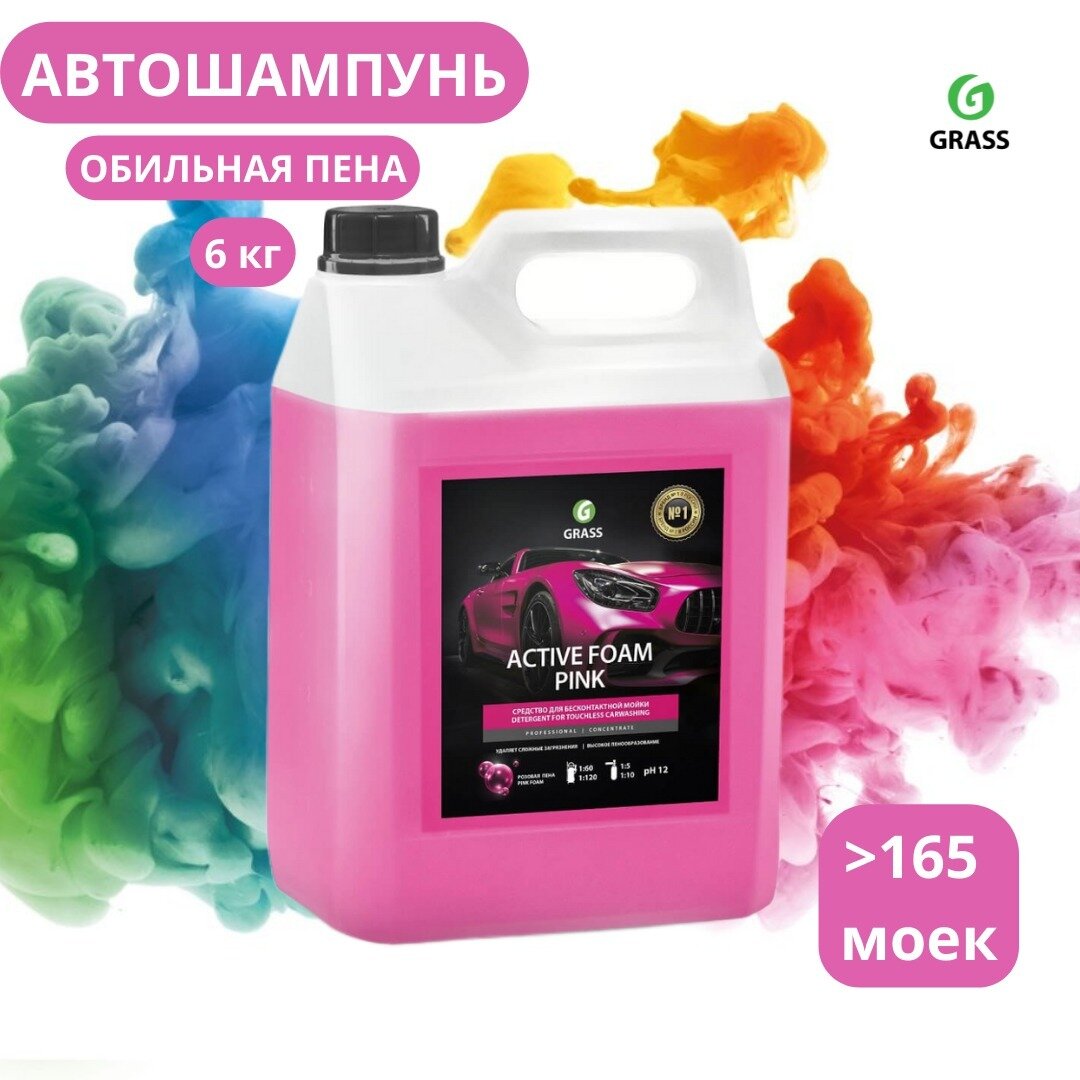 Автошампунь grass active foam pink для бесконтактной мойки розовая пена 1л