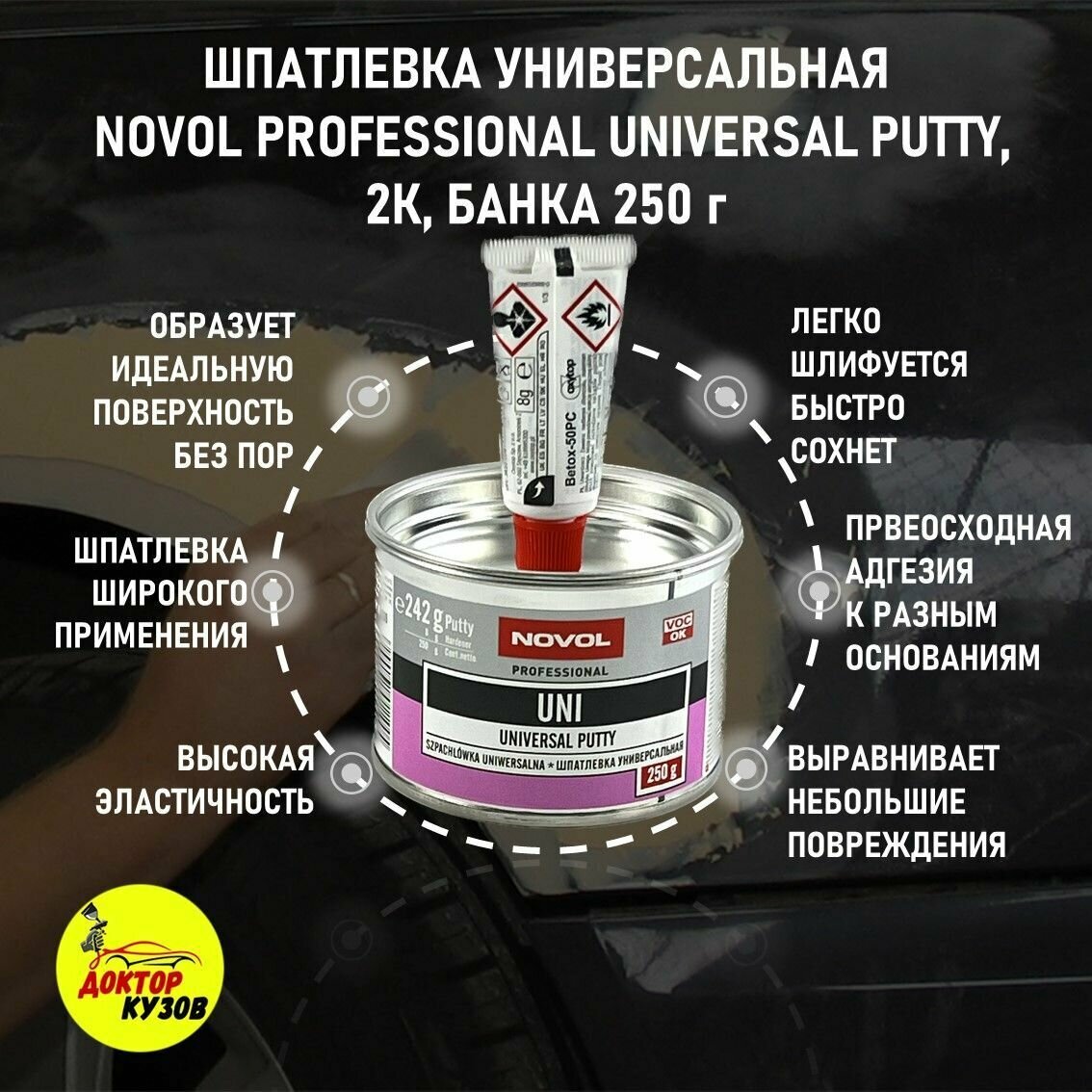 Шпатлевка Novol Professional Universal Putty универсальная, (+отвердитель Betox-50PC), банка 242г + туба 8г, арт. 1100