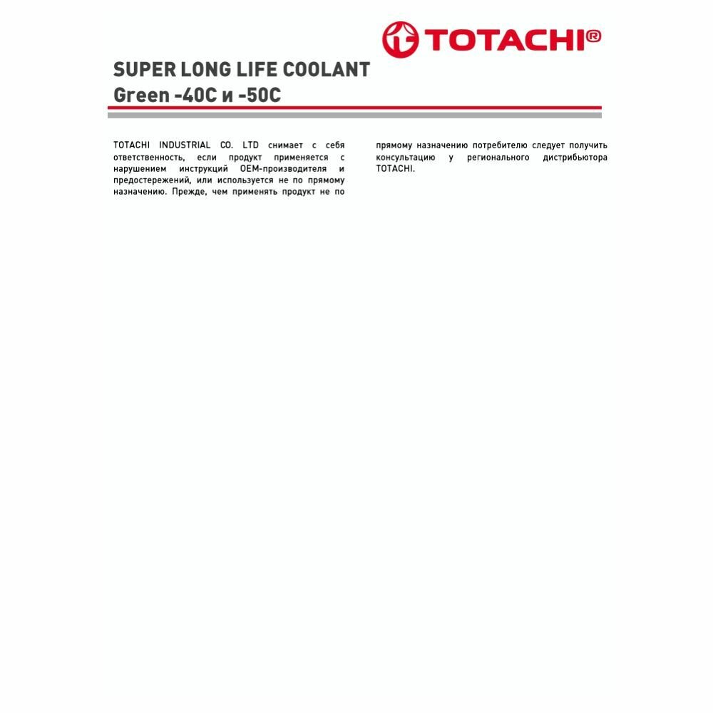TOTACHI 41701 Жидкость охлаждающая низкозамерзающая TOTACHI SUPER LONG LIFE COOLANT Green -50C 1л