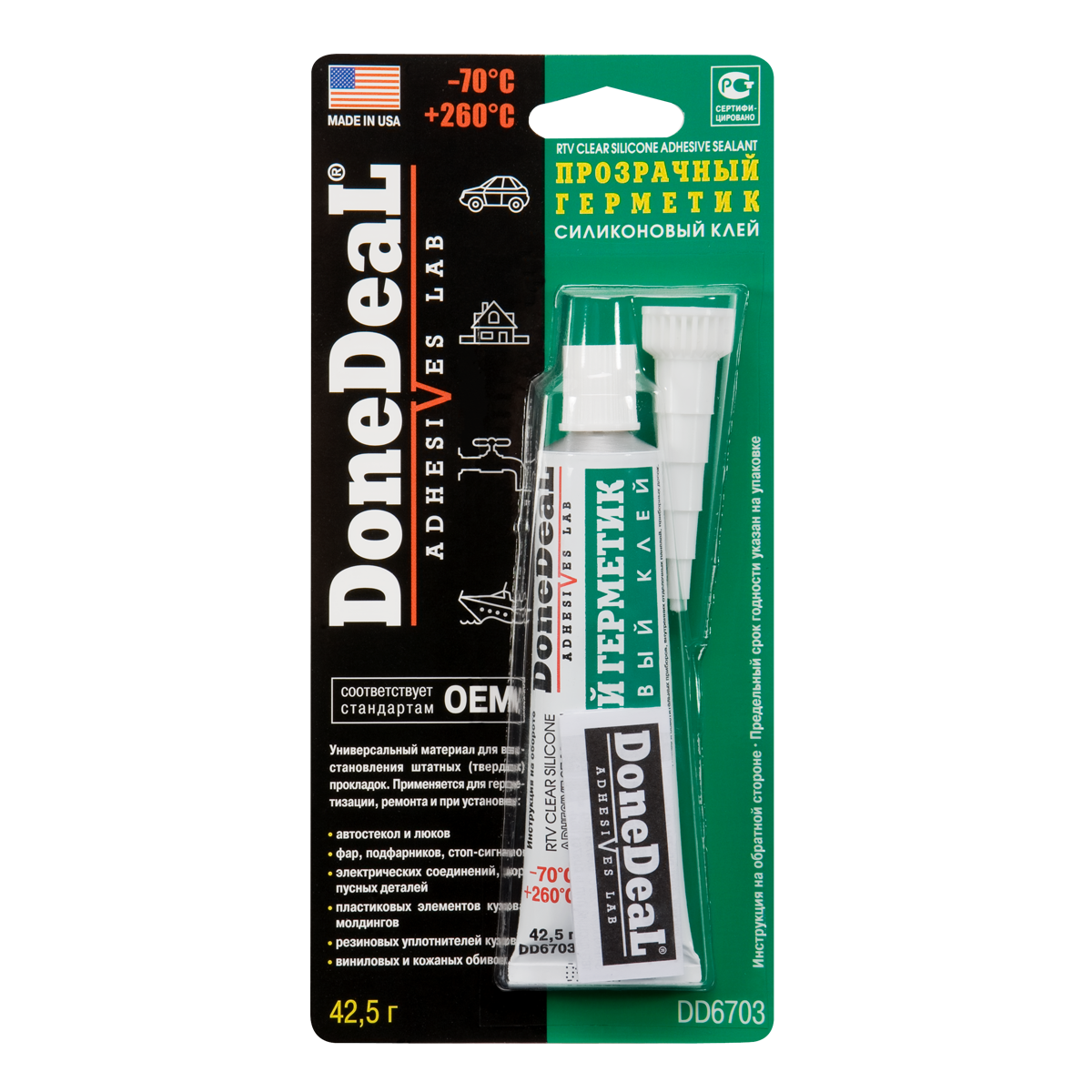 Герметик Силиконовый Прозрачный 42,5 Гр От 70C До +260 C Donedeal Dd6703 DoneDeal арт. DD6703