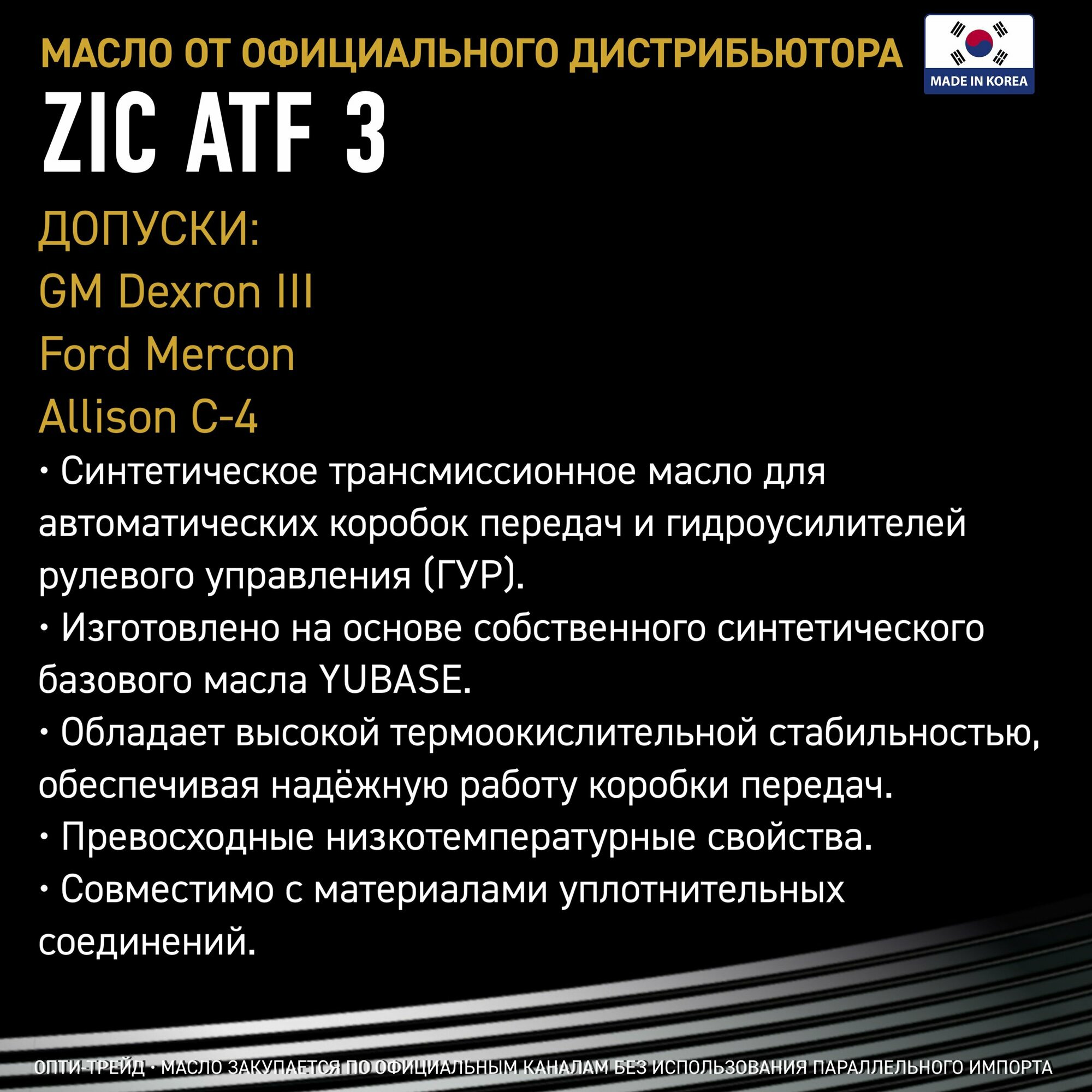 ZIC Масло трансмиссионное синтетическое "ATF 3", 4л
