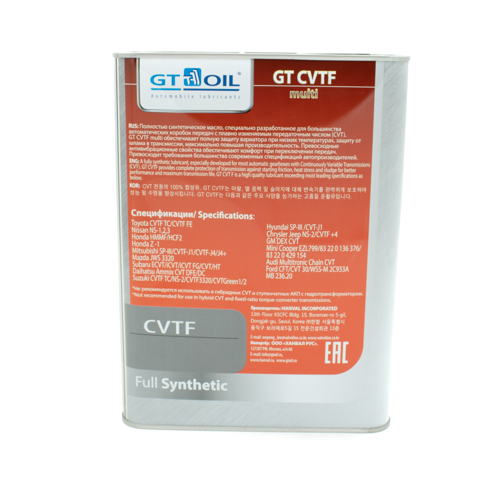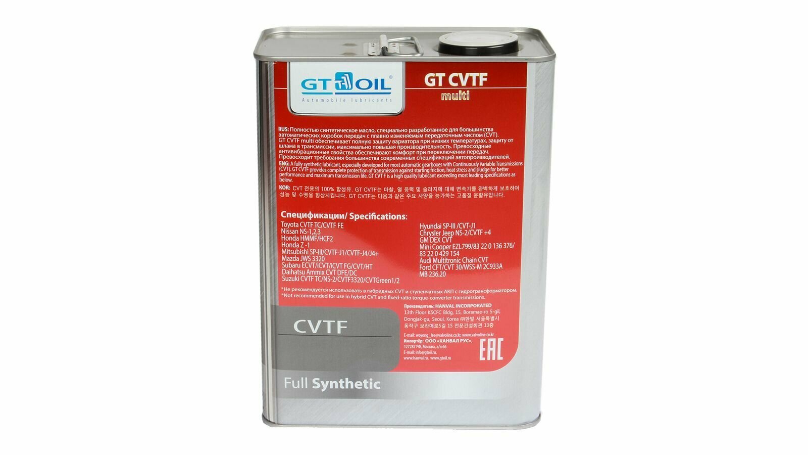 Масло Трансмиссионное Gt Oil 4Л Синтетика Gt Cvtf Multi GT OIL арт. 8809059408667