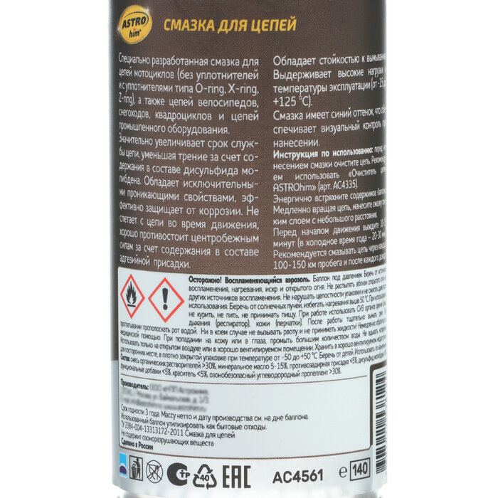 Смазка цепей мототехники astrohim ac-4561 140мл аэрозоль