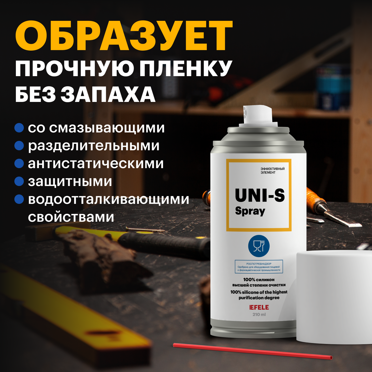 СохранитьПищевая смазка EFELE Uni-s Spray / силикон высшей степени очистки) / аэрозоль (210 мл) интересное: