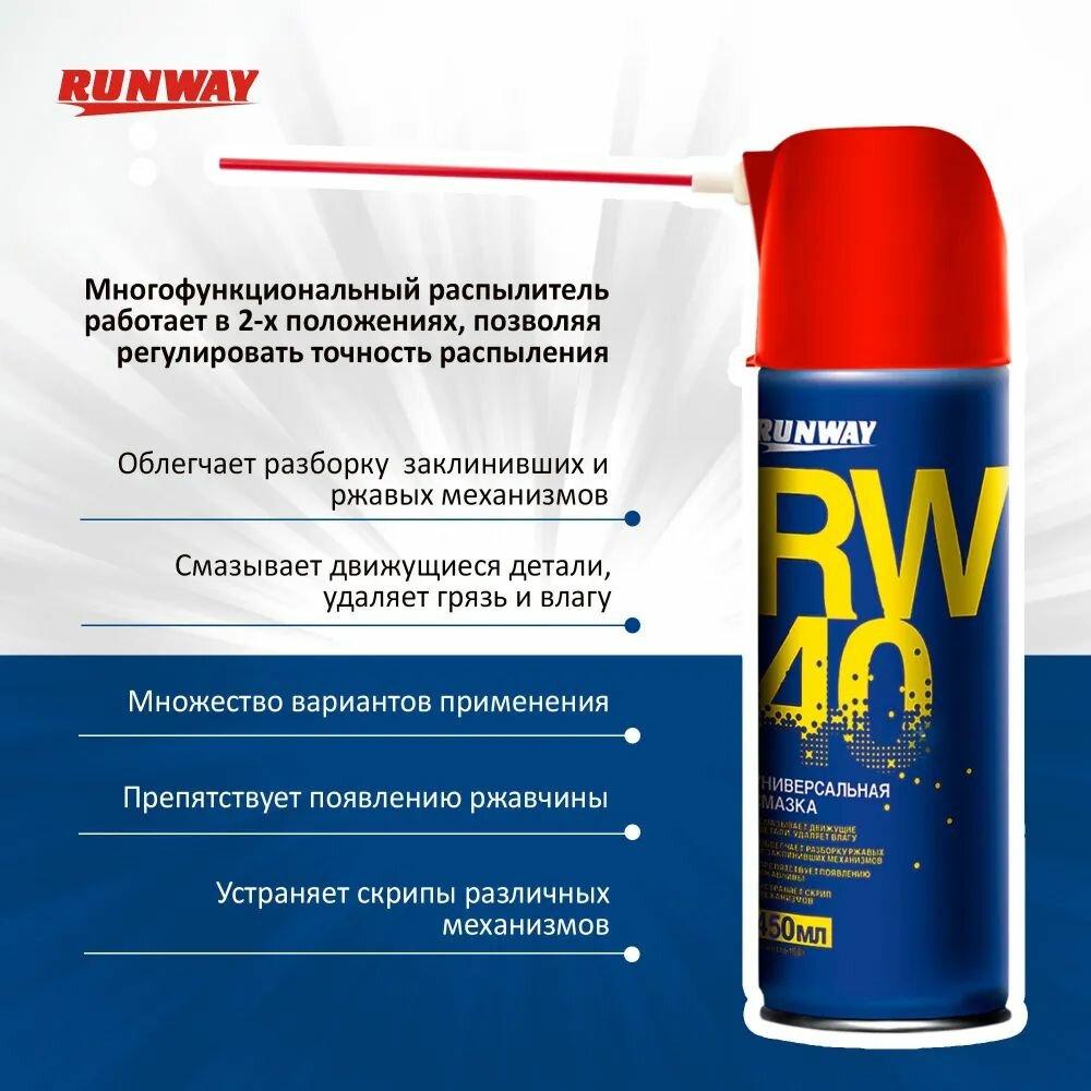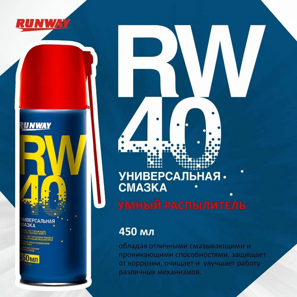 Смазка Универсальная Runway Rw-40 450мл Аэрозоль Умный Распылитель RUNWAY арт. RW6045