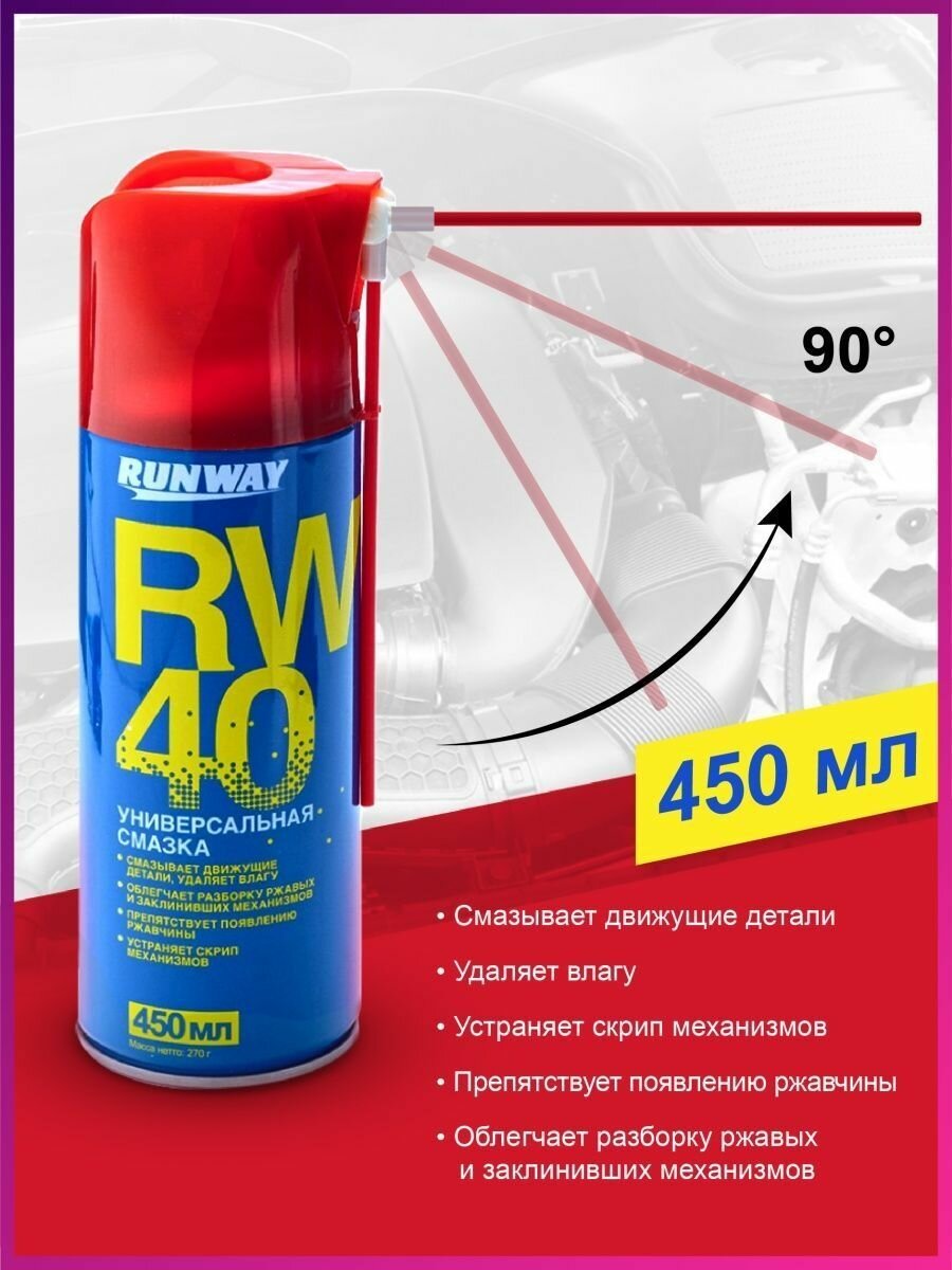 Смазка RUNWAY универсальная, RW-40, аналог WD-40, 450 мл, аэрозоль с распылителем, RW604 (RW6045)